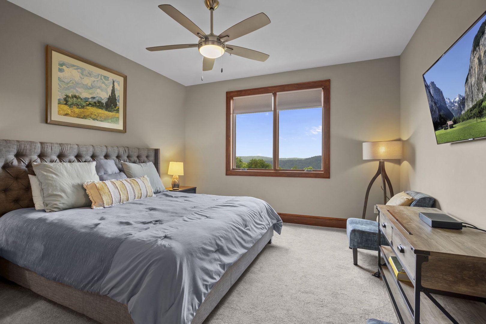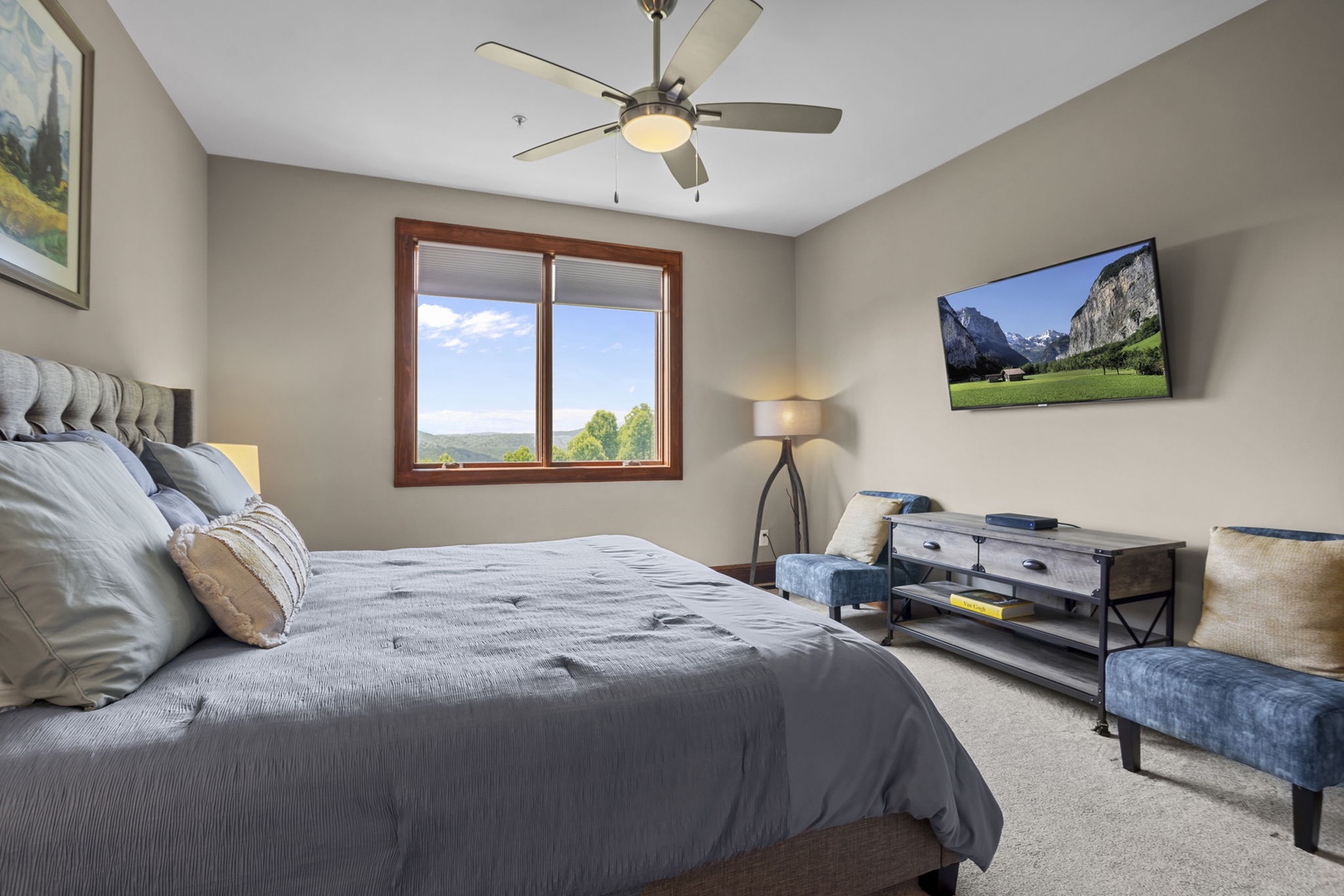 Primary Bedroom---King Size Bed, Mountain View, TV