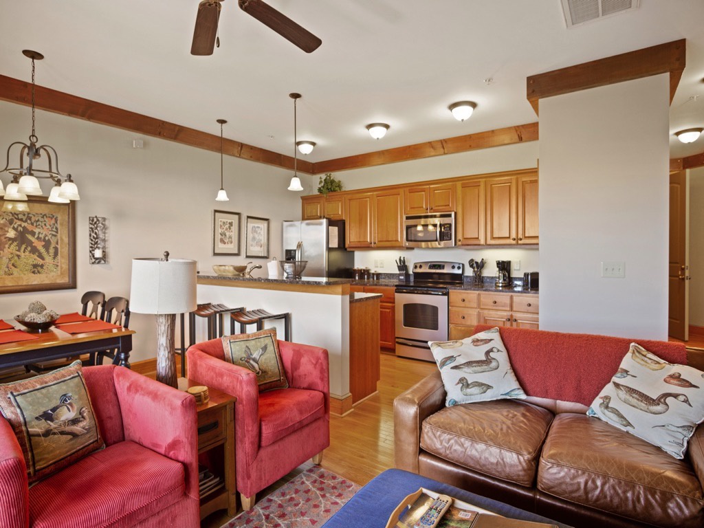 Resorts' Amenities: Amenities in these gated resorts include indoor and outdoor (seasonal May 1 - Oct. 1) swimming pools with hot tubs, two private clubhouses, fitness rooms, stocked fishing ponds, a 23-acre riverfront park, community hiking trails and catch and release fishing.