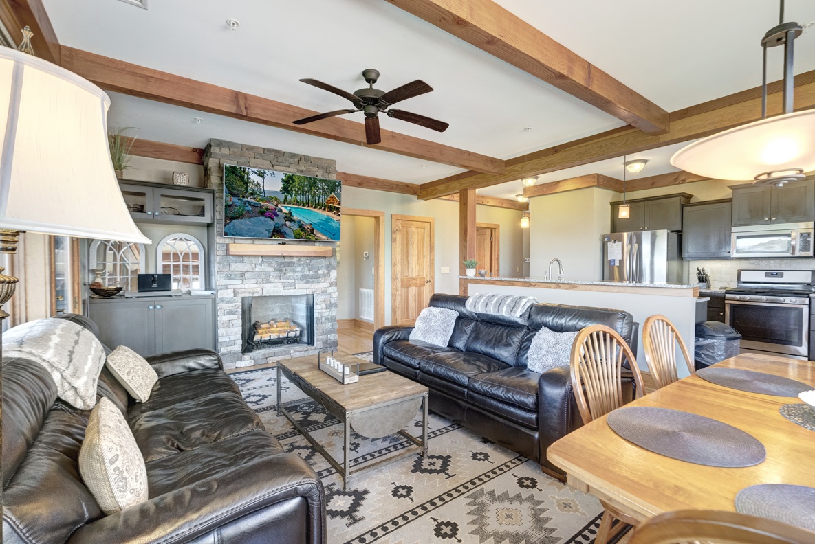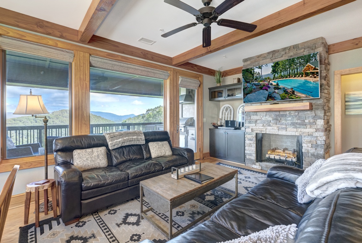 Living Room--- Cozy Fireplace, TV, Mountain View