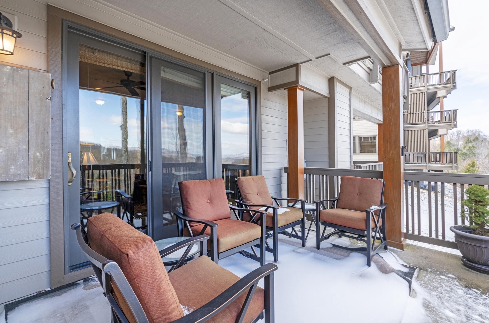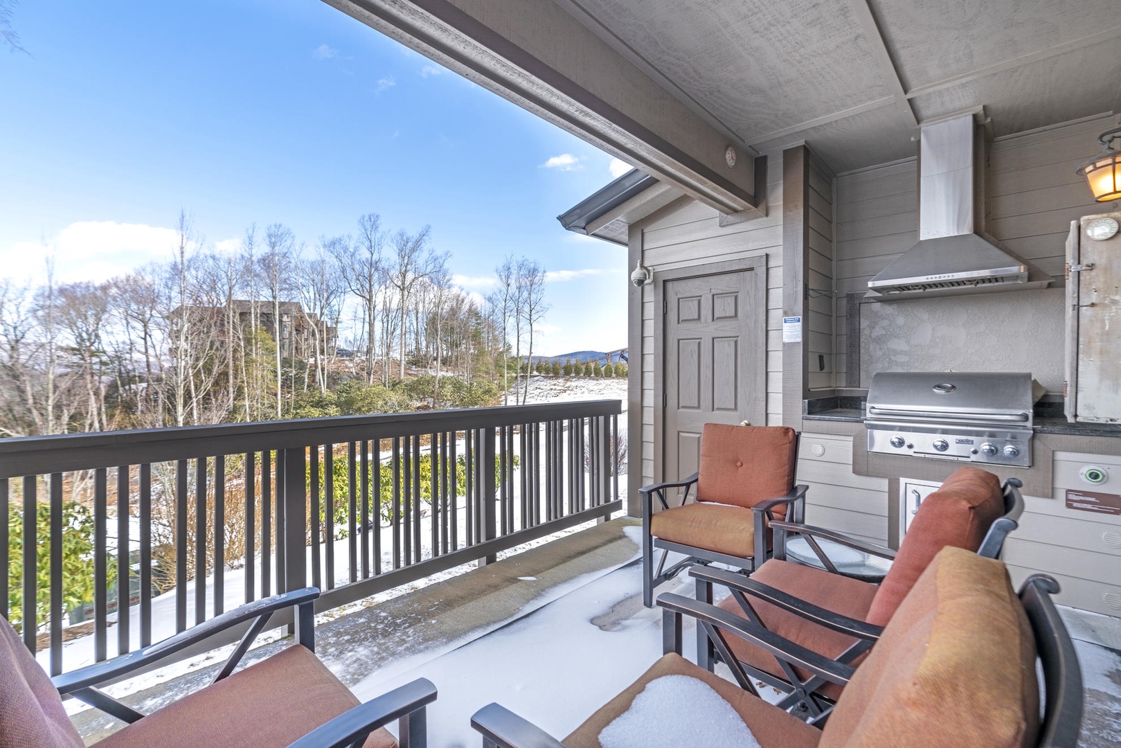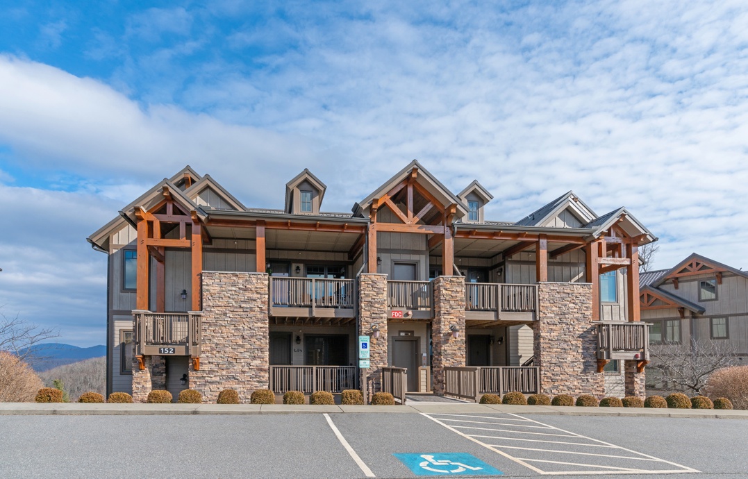 Description: Enjoy a beautiful view of mountain living from this rugged timber frame one bedroom condo located in Chalakee, within Echota Resorts. This condo features a covered front entry and rear deck with an amazing Mountain view. The view can be admired from the deck or from the large picture windows in the open kitchen and living room areas. The kitchen features custom kitchen cabinetry, granite countertops, hardwood floors, and stainless-steel appliances. It is fully equipped with everything to prepare a meal inside or outside on the built-in-gas grill. The living room is cozy and inviting with a cultured stone gas fireplace, hardwood floors, comfortable furniture and a TV. Stay for a weekend to relax or an extended period and enjoy all the High Country has to offer. This condo is on the bottom floor (downstairs) with an elevator. In case of power outages or elevator equipment malfunctions, the condo will be stair access only.