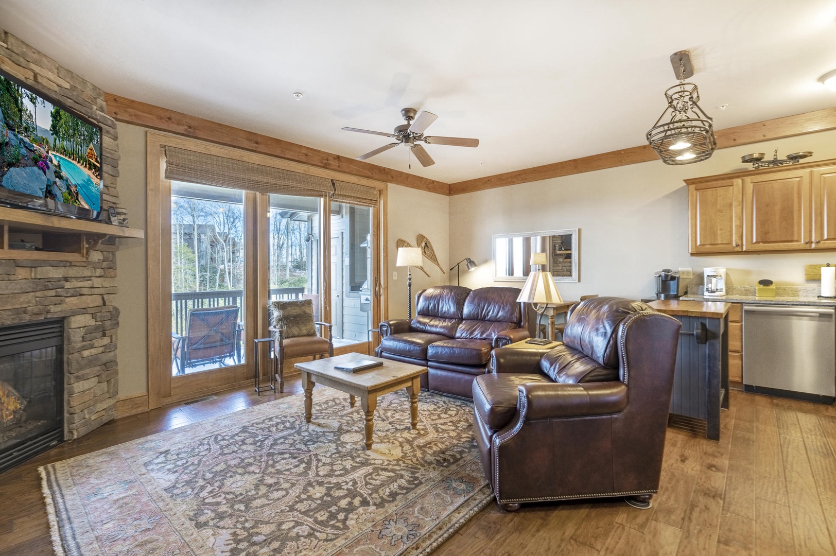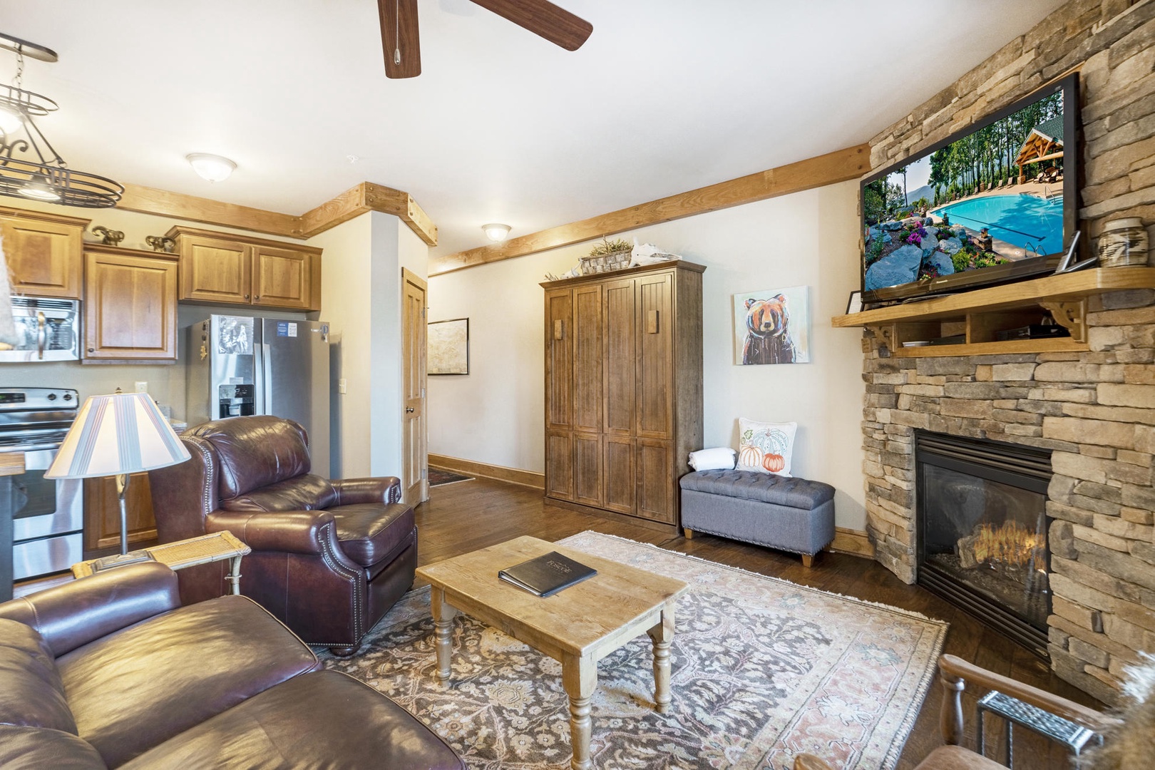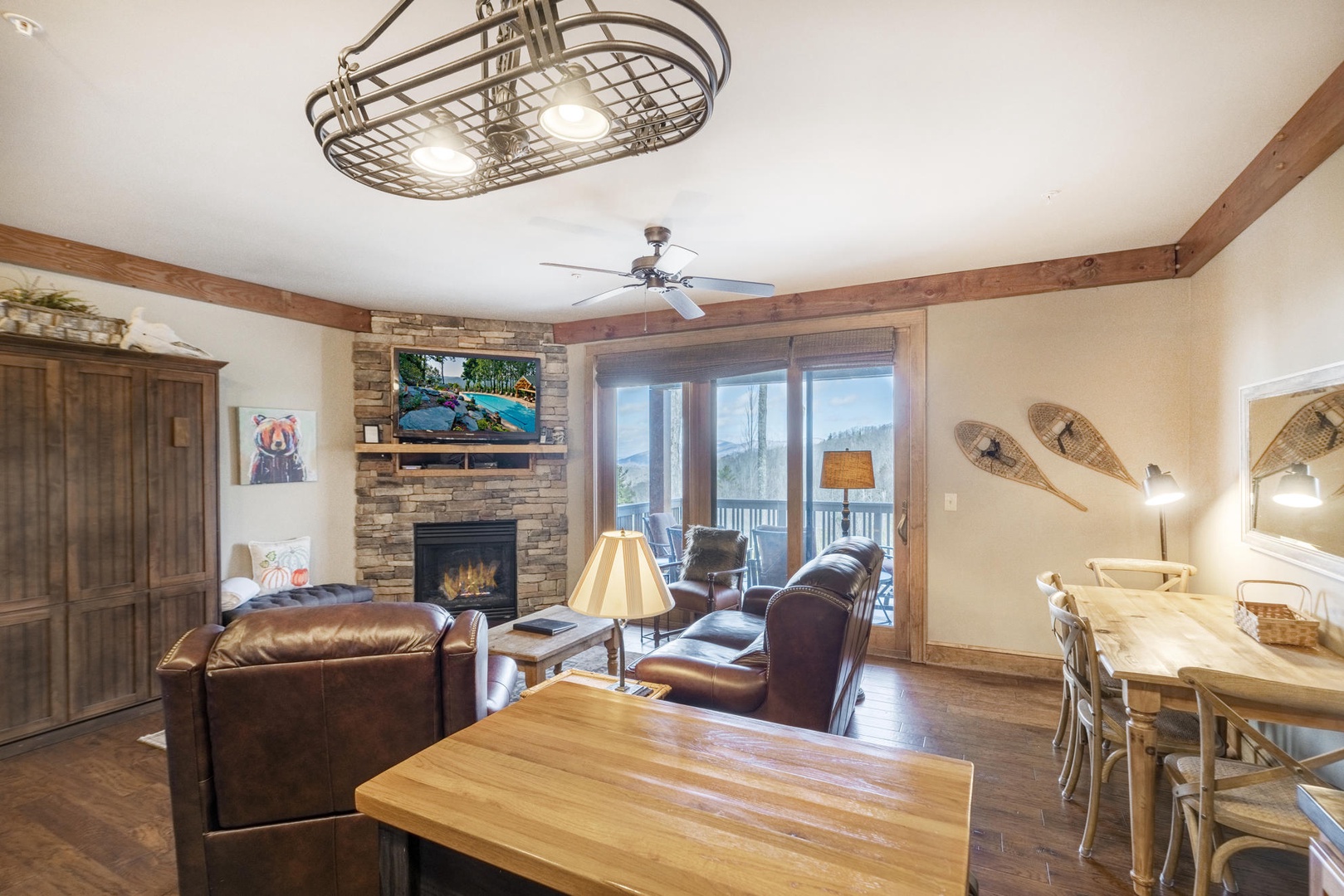 Living Room --- Cozy Mountain Feel w/ Gas Logs