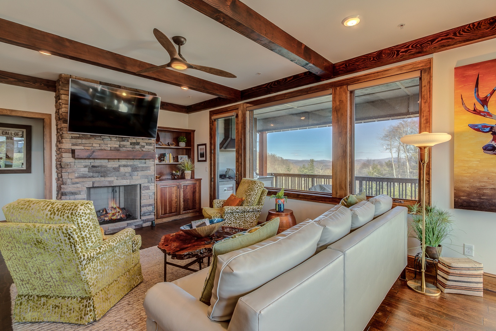 Living Room--- Cozy Fireplace, TV, Mountain View