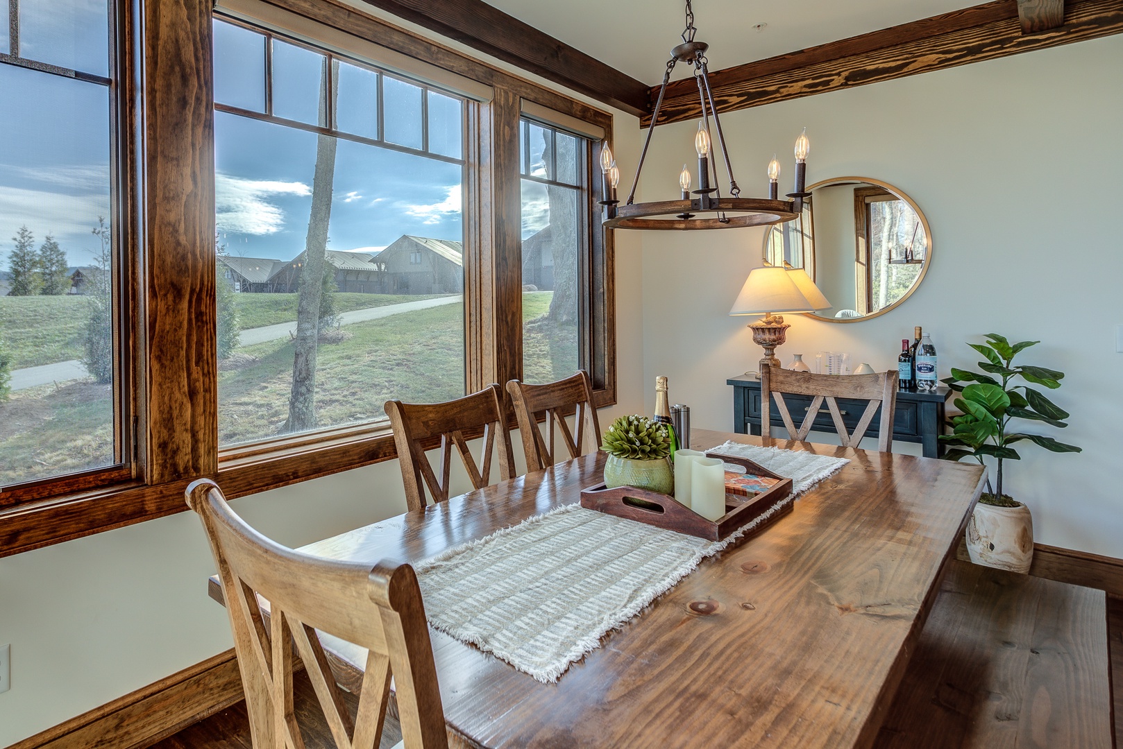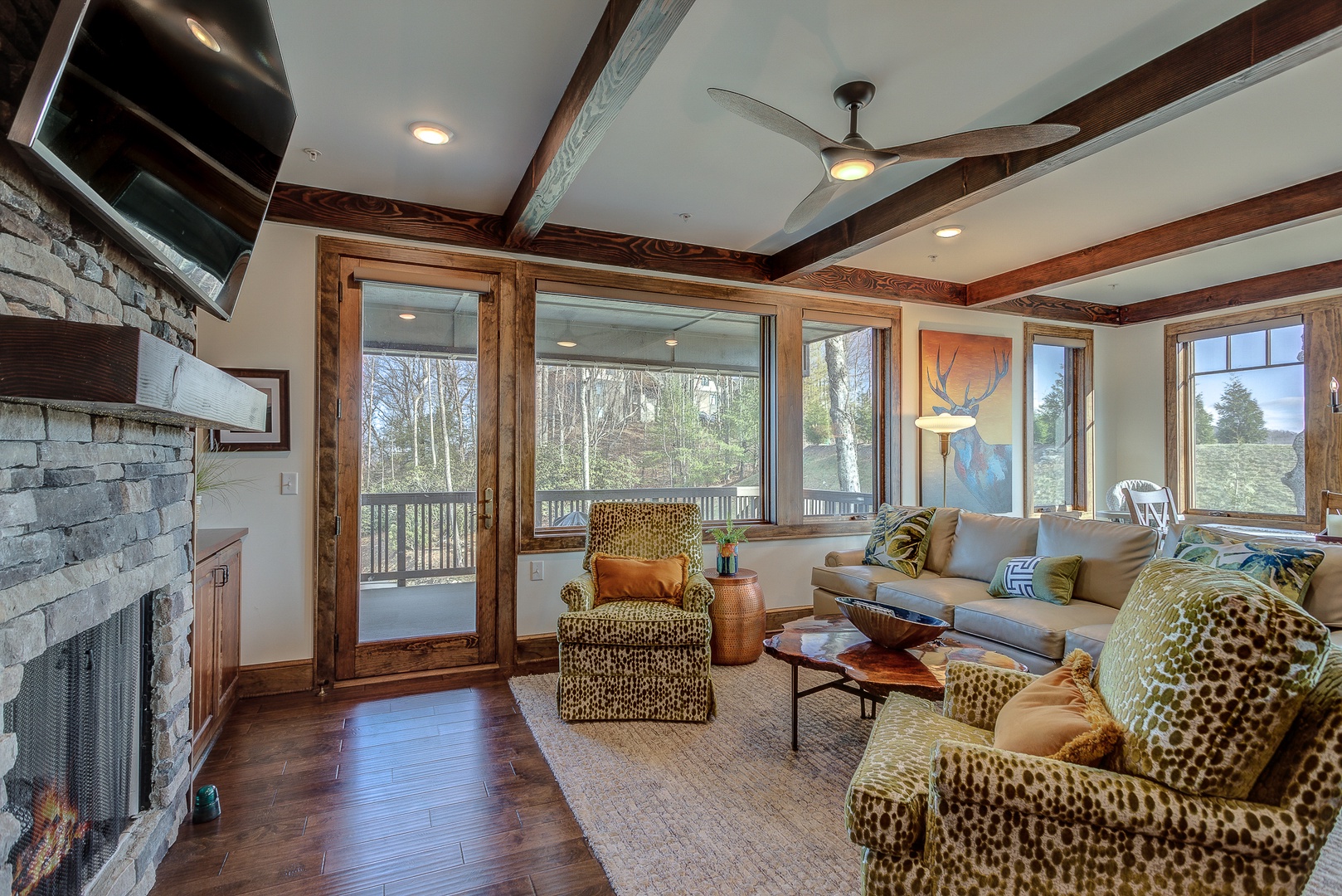 Description: This beautiful three-bedroom, three-bathroom condo, located in the serene Chalakee area within Echota Resorts, offers an idyllic mountain retreat. Situated on the bottom floor, this rustic timber-frame unit boasts stunning views of the surrounding mountains, which can be admired from the large rear deck or through the expansive picture windows in the open kitchen and living room areas.