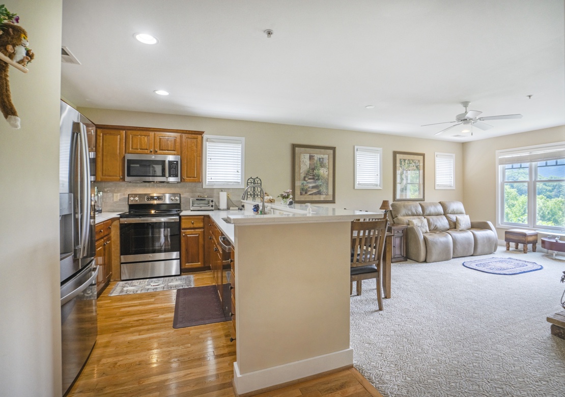 Description: Located in the beautiful development of Echota, this two-bedroom, two-bathroom main floor (entry level, no stairs) condo is perfect for your next vacation. The Grandfather Mountain View can be admired from the living room, primary bedroom and deck. This condo is fully furnished with everything you would need for a long retreat or a short weekend getaway. The kitchen is well equipped to prepare meals and the living room is inviting with a gas log fireplace and mountain view. Curl up, get cozy and read a book, watch TV or take a nap…. the choice is yours! Guests of this unit have access to the deck from the living room or primary bedroom where they can breathe in fresh mountain air while gazing at the mountains and listening to the sounds of nature. Enjoy a short mountain getaway to relax or an extended stay and explore all the High Country has to offer.