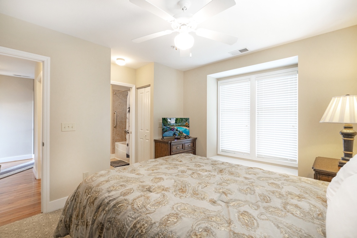 This is a beautiful first floor unit! We appreciate the pleasant and helpful assistance of Foscoe Rentals. Upon arrival the window treatments in living area and Master bedroom did not function well to allow us to see the beautiful view. Maintenance was prompt to respond after we called the Rental office the first day. We would suggest replacement of those window shades as the strings are tangled on the shades in the master bedroom and living room blinds do not open and close properly. Also, we cleared